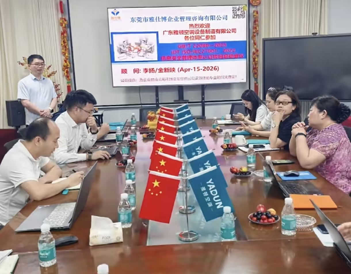 此次启动会议的顺利召开,标志着雅顿空调信息安全管理工作迈入标准化、体系化新阶段。后续,公司将在雅士博企管专业指导下,有序开展体系宣贯、文件编制、内部审核等工作,全力推进 ISO27001 认证落地,以严谨的安全管理、规范的运营流程,为客户提供更可靠的产品与服务,为企业可持续发展保驾护航。