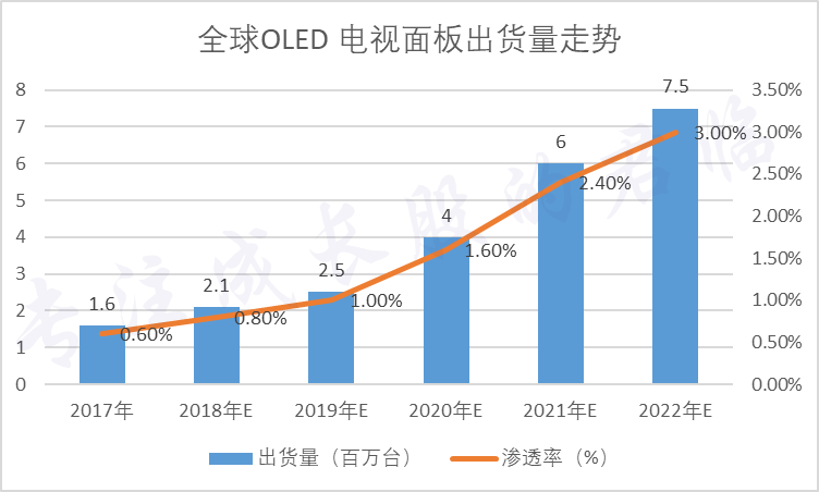 目前全球只有LG可以批量供应OLED彩电,但以他的出货量还远无法主导OLED彩电替代LCD彩电。
