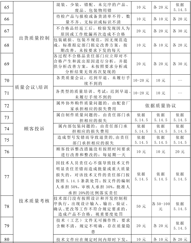 质量改进的协助与涉及质量责任的承担,配合激励小组及品质部执行本质量激励细则。