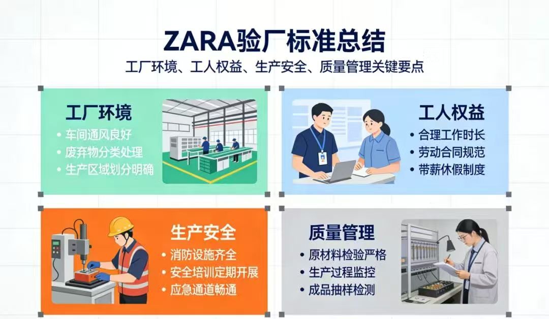 综上,ZARA验厂本质是推动供应链合规化与可持续发展的管理手段,企业需以常态化合规为目标,结合标准要求完善管理体系,既满足审核门槛,也实现生产体系的升级优化。
