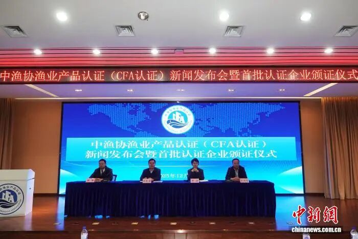 中新社北京12月29日电 (记者 孙自法)中国渔业协会(中渔协)渔业产品认证(CFA认证)体系29日正式发布,这一填补中国渔业行业专业化认证关键空白、实现“从池塘到餐桌”全链条质量管控的重要举措正式推出,标志着中国渔业在标准化建设与质量安全保障领域迈出关键一步。