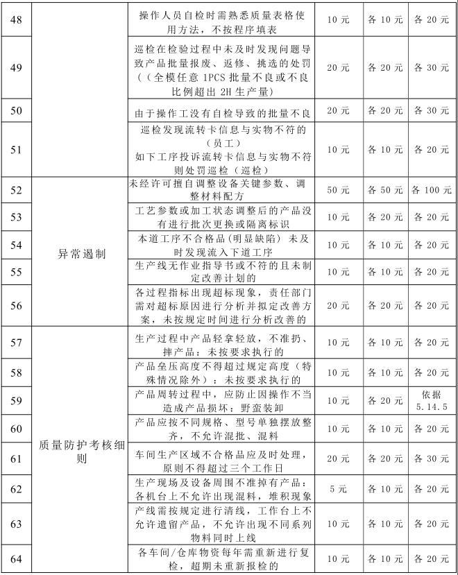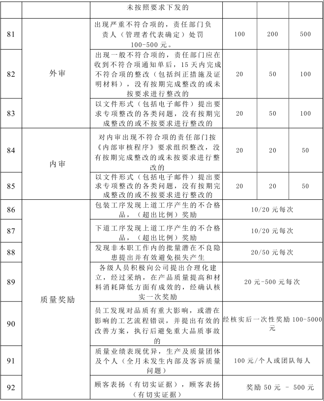 1. 激励的本质不是对各级员工的处罚,而是为了让各级工作人员能够按照公司质量管理要求,进行相关作业的一种监督手段。