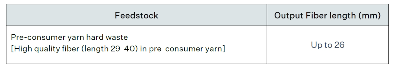纺织废料回收后输出的纤维长度如下表,在GRS认证或TC交易证书时,纤维长度不可大于此表最大的纤维长度。